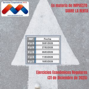 Para los Ejercicios Económicos Regulares (al 31 de Diciembre de 2025) es fundamental considerar las fechas en la cual deben presenta y pagar la Declaración Definitiva de Impuesto Sobre La Renta (ISLR), ya que los rangos de fechas para cumplir con la misma tienen fechas muy anticipadas, asignándose una precisa fecha para cada contribuyente dependiendo de su último número del Registro Único de Información Fiscal (RIF), que dada su importancia se revela seguidamente:
